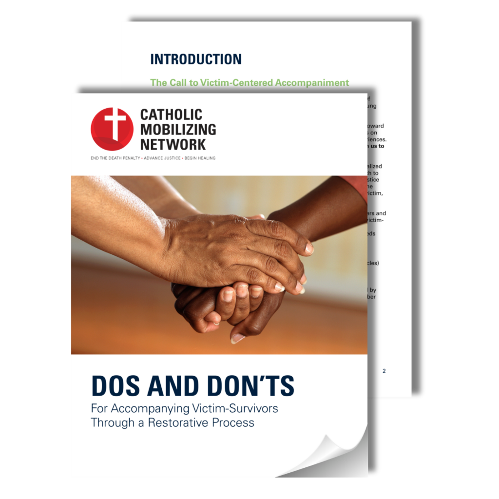 As we celebrate National Crime Victims’ Rights Week during this Easter season, CMN has compiled a list of resources to be used and shared. They include stories of victim-survivors opposing the death penalty and engaging in restorative justice processes, as well as tools and opportunities to better accompany victims of violence and crime in our prayer and throughout Catholic ministry.